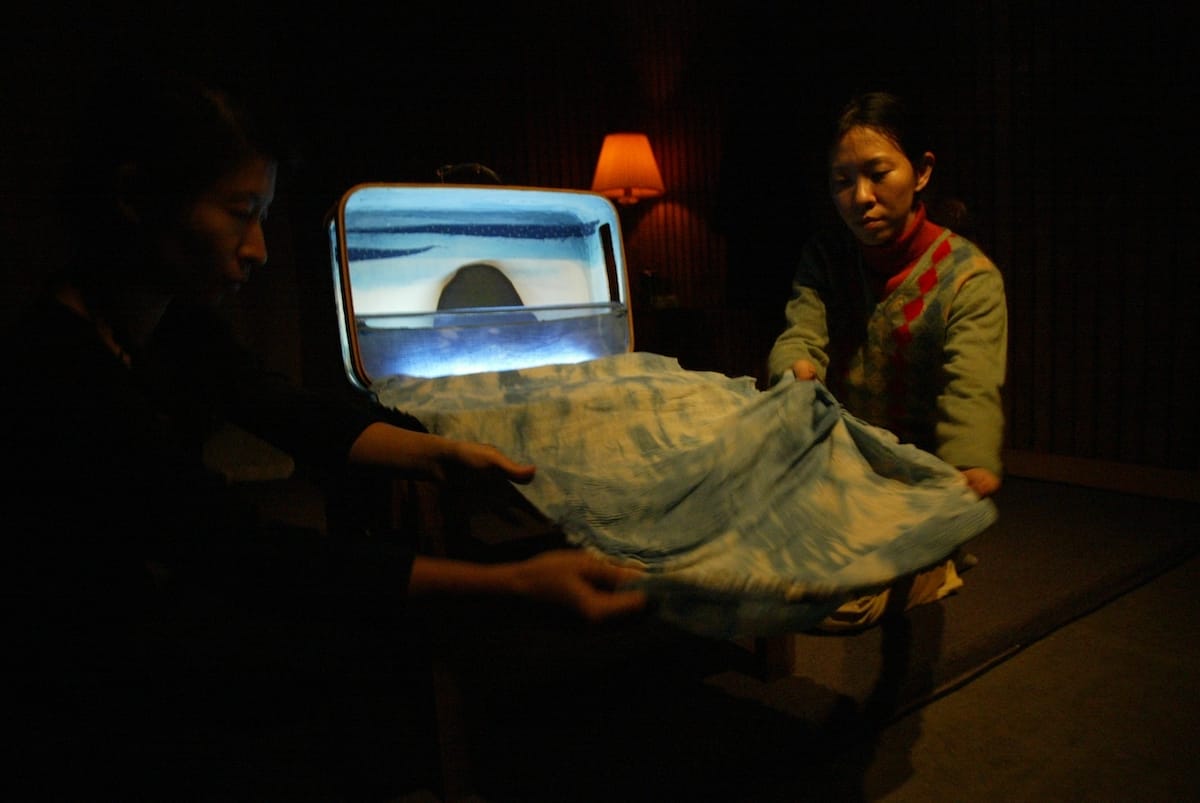 運用兩只小小的皮箱包含海邊的想像場景、有關家的記憶場景,讓回憶放在皮箱裡被帶走遠行。加上物件、玩具、戲偶與音樂等元素互相交織,在小而緊密的空間裡,台上台下被音樂密密包圍,共同營造出溫暖感人的氛圍。